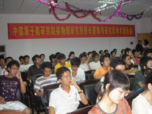晚上8:00在第九教学楼411学术报告厅,由郭萍教授主持了题目为“核物理研究现状与展望"的学术报告会。夏海鸿所长介绍了中国原子能科学研究院及核物理研究所发展的历史,详细阐述了核物理在各个领域的应用,以及世界核物理发展的未来.此次报告会中夏所长的坦诚、谦虚和幽默的讲话风格,赢得了同学们对他的尊敬和信赖。报告后,同学们就一些学习中的困惑和问题向夏所长请教,夏所长一一仔细地给予了解答。