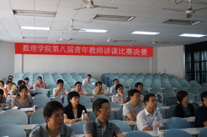 参赛选手们赛前进行了精心准备,赛场上神采奕奕、激情飞扬。陈铀老师课件精美,图文并茂,声音与动画相结合,以生动形象的实例引出知识点的讲解;朱晖老师讲课板书漂亮,思路清晰,推理严密,讲解细致。……经过一上午的精彩角逐和专家评分,陈铀获得一等奖,朱晖、刘冬元获得二等奖,刘艳琪、廖艳果、李寰获得三等奖。