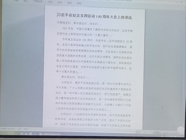 2019年5月23日下午,bevictor伟德官网全体教职工在9-309举行第二次教职工理论学习,院班主任、公司党委委员李平贵同志带领大家一起学习习近平总书记在纪念五四运动100周年大会上的讲话。