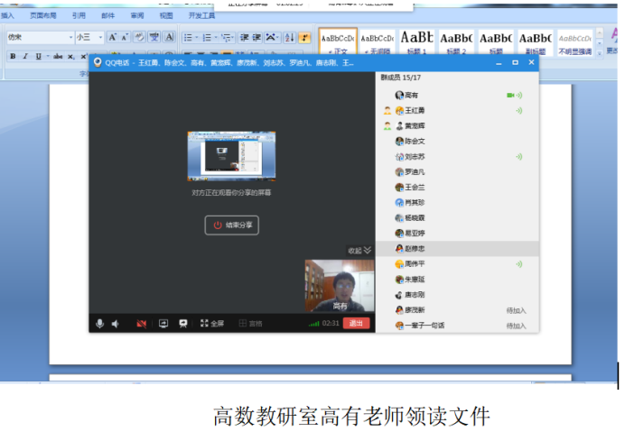 高等数学教研室党支部:首先,支部书记刘冬元带领老师们学习公司通知;然后刘冬元、高有两位老师带领老师们学习《3月18日中共中央政治局常务委员会会议精神》、《习近平:毫不放松抓紧抓实抓细各项防控工作坚决打赢湖北保卫战武汉保卫战》等文件。接着,老师们结合近期工作实际进行了研讨,主题为“结合工作实际,落实精准施策联防联控,坚决打赢疫情防控阻击战”。教研室主任黄宠辉、王红勇对线上教学,成绩的评定给出了一些建议,布置了近期老师们应该完成的工作。为了加强过程考核,王会兰老师、刘冬元老师演示了学习通上怎么布置作业、考试任务。经过这次学习,老师们纷纷表示:非常赞同中央、省委、公司党委有关部署,今后在教学科研中进一步强化责任担当,搞好网络教学工作,做到停课不停学,在疫情防控工作中尽到自己的一份力量。
