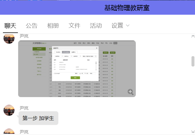 所幸,这些困难在大家的帮助下一个个被解决。缺少的教学资料有同事传给了诸玲老师,电脑也找邻居借到了。没有纸质课本,也有老师联系出版社寻求帮助。接下来的两天,物理教研室的两位老师还特意针对此次的情况,手把手教会了全教研室老师如何用学习通开课、上传资料、上课等等。为了预防学习通卡顿,大家还一起试验了QQ直播上课。