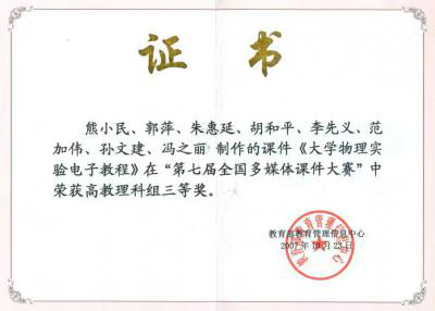 为了能够更好地适合公司实际的实验教学,满足实验教学改革的需要,物理实验室老师通过培训和教学竞赛不断提高自身的教学能力并获得多项竞赛奖,如湖南省高等公司物理实验青年教师讲课比赛一等奖、湖南省高等公司课堂教学竞赛三等奖、伟德中国官网教学成果奖“二等奖”,全国老员工物理实验竞赛一等奖等。同时物理实验室出版了多部实验教材,编写了《大学物理实验补充教材》、《大学物理实验》和《大学物理实验教程》等教材。