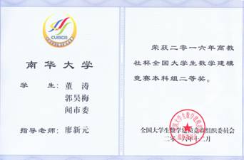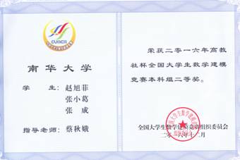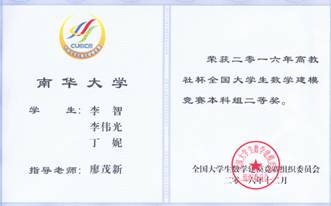 2016伟德中国官网本科数学建模竞赛获全国奖成绩