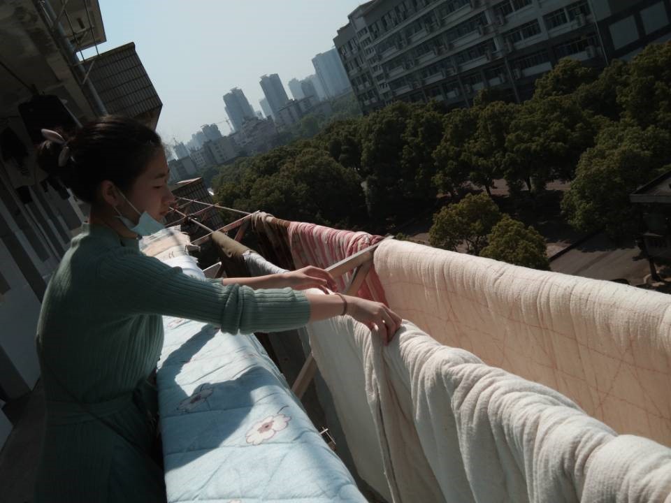 员工宿舍因长期无人居住,以前那种温馨的宿舍现已被灰尘排泄物抹去了,由于晒被空间有限,副书记、辅导员和班主任花了几天时间将所所有需要晒的被子床单和通风的宿舍进行了仔细地处理,通过拍照反馈,给员工吃了定心丸,为顺利迎接员工返校和正常生活又走出了坚实暖心的一步。