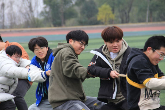 一条麻绳聚英雄,一片绿茵载热血。为了提高数理学子的身体素质、提高团队协作和团结合作精神、增强集体荣誉感、丰富校园文化生活,公司体育部于3月9日上午10时在雨母校区田径场组织开展2024年春季学期拔河友谊赛,来自2022、2023级各班的共计10支队伍120余人参加比赛。