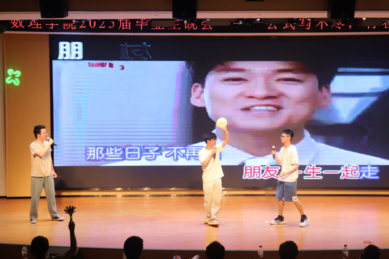 节目环节精彩纷呈。毕业班党员带来的团体舞蹈《我的未来式》活力四射,瞬间点燃现场气氛;朱闹同学独唱的《永不失联的爱》,以温暖歌声传递出爱的力量;黄智祥同学带来的《那个远方》,用动人旋律唤起大家对梦想的执着追求。舞蹈串烧、歌曲串烧等节目形式多样,表演者们用精湛技艺和饱满热情,展现了青春风采。bevictor伟德官网文艺部的合唱、邬佳晋与程春乐同学的《那些年》、江鹏飞同学的《知我》等演唱,或激昂或深情,带领大家重温大学美好时光。bevictor伟德官网团学会的团体舞蹈《GGBOND》、黄雨欣同学的舞蹈串烧,以灵动舞姿为晚会增添绚丽色彩。李⼩琛、冼茂均、周东亮同学合唱的《朋友》,唱出了同窗间深厚情谊;好好学习读书会的诗歌朗诵《礼赞·青春》,用优美诗句礼赞青春,引发全场共鸣。
