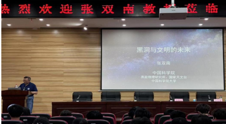 2024年6月1日下午,在崇业楼学术报告厅,中国科公司高能物理研究所张双南研究员为260余名师生带来了一场“黑洞与文明的未来”为主题的科普讲座。讲座由伟德中国官网科研部、研究生院和bevictor伟德官网联合主办,bevictor伟德官网经理林文斌教授主持。
