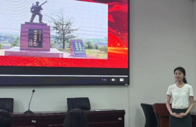 首位登台的是2022级研究生谢敏同学。她的演讲以祁东县为背景,所精心挑选的短视频片段生动展现了黄花菜精神和王如痴的英勇事迹,使观众仿佛亲临现场。谢敏同学的宣讲充满了感情,每一句话都表达着对历史和英雄的敬仰。她的眼神闪烁着对革命先辈的敬意,声音中流露出对那个时代的深情眷恋。她的情感让听众仿佛穿越时空,与历史产生了共鸣。值得称赞的是,她对时间的把握非常精准,演讲的节奏恰到好处。短视频与演讲内容紧密结合,画面的切换恰如其分,使整个演讲过程生动有趣,观众全神贯注。这次演讲不仅传承了历史,更触动了听众的心灵,成为一次深刻的心灵体验。